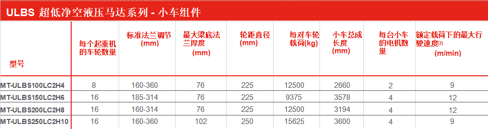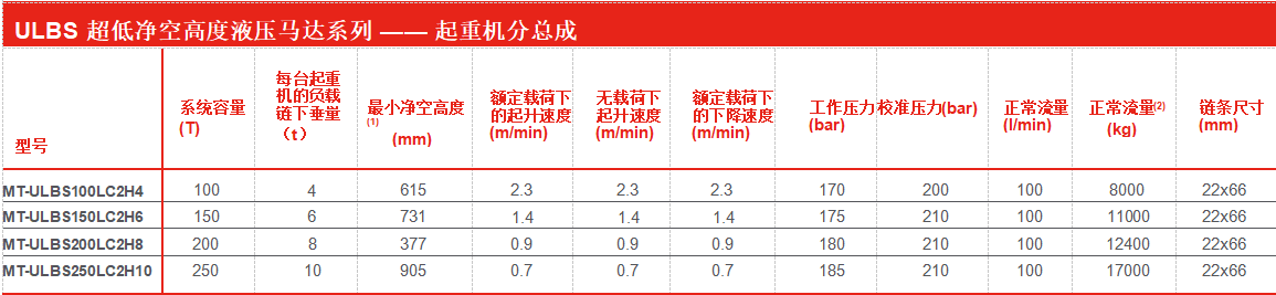 搬运系统可设计为超低净空高度版本,适用于工作高度极为有限的应用场景,其额定载荷范围为 100 ~ 250 吨。这些产品的净空高度仅略大于底部吊钩组件的尺寸。