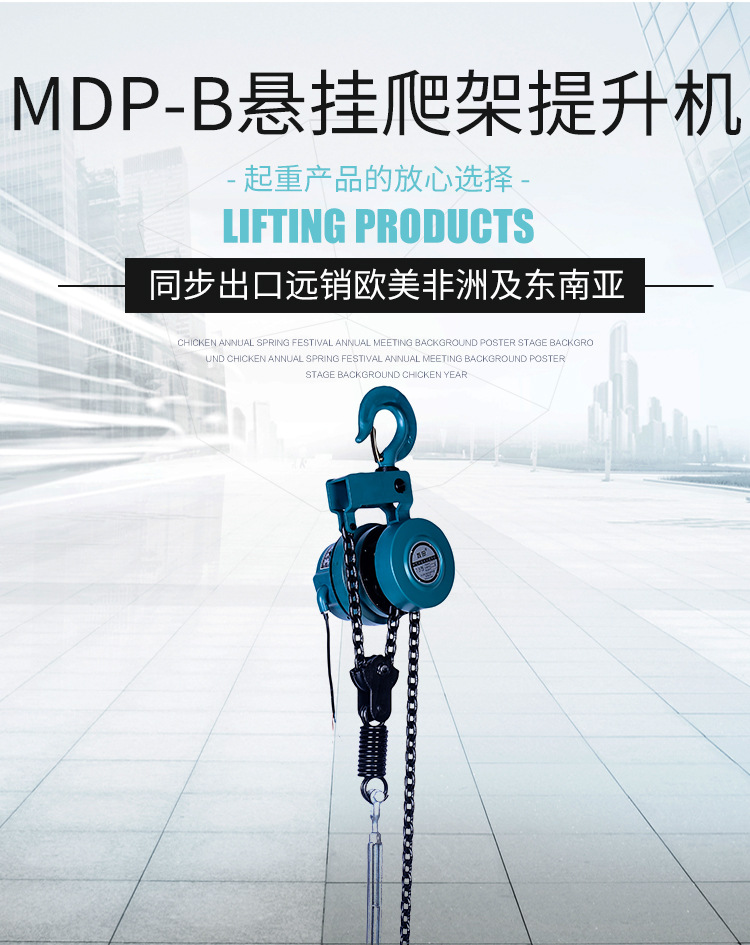 爬架电动葫芦又名“群吊电动葫芦”它保留了手拉葫芦轻巧方便的特点,又改进了手拉葫芦人工操作提升速度慢的不足,它集电动葫芦和手拉葫芦的优点与一身,采用盘式制动电机做工作,行驶减速器减速,有着机构紧凑,使用方便,制动可靠维护简单等特点。